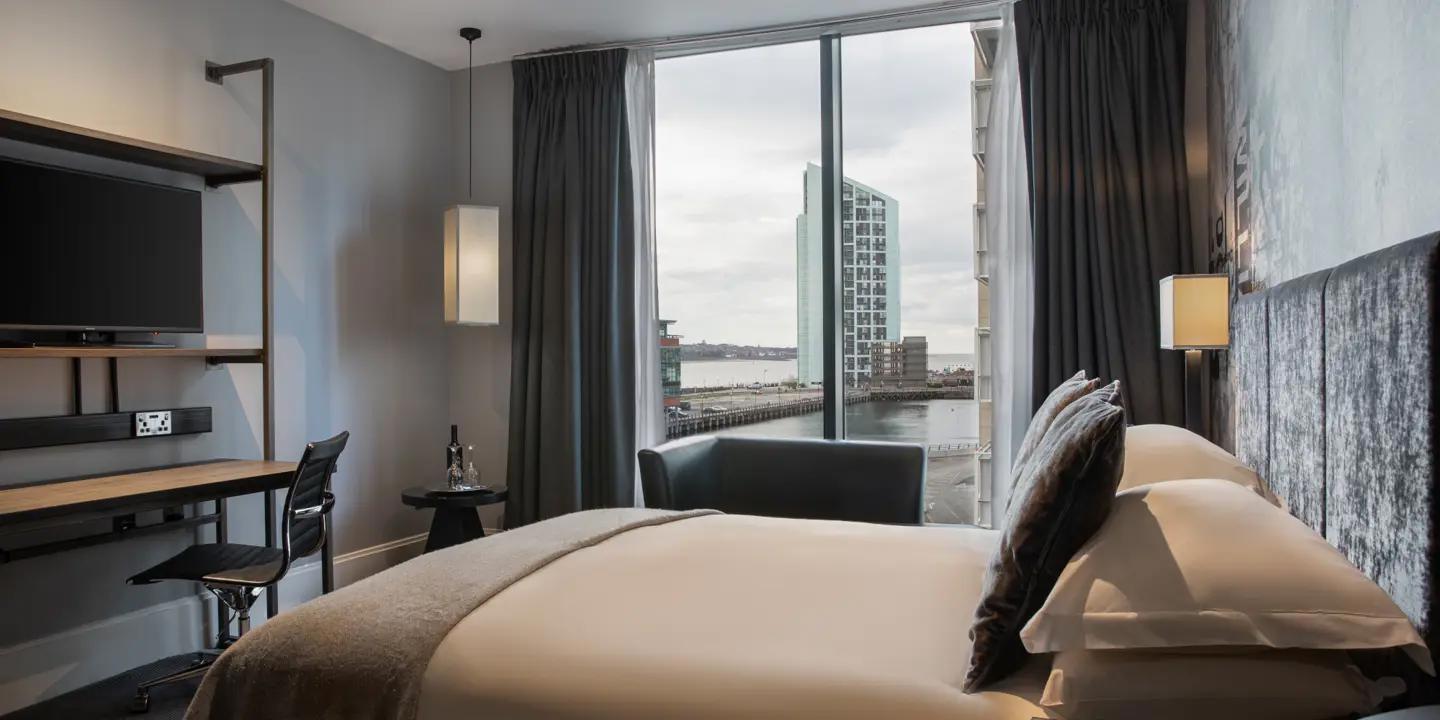 The hotel occupies a converted dockside building and has a bold, modern interior. Rooms are generous by city standards, many with views across the Mersey or the dock. Food and drink are centred on the Chez Mal Brasserie and Mal Bar. Chez Mal serves classic brasserie dishes with a modern edge, while the Mal Bar is a lively spot for cocktails and late evening drinks.