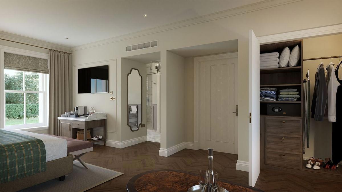 Dunluce Lodge sits beside the fourth fairway of Royal Portrush, placing guests directly alongside one of the world’s most revered links courses. As the region’s only five star hotel, it combines a prime golfing position with a level of finish and service that feels genuinely elevated.
