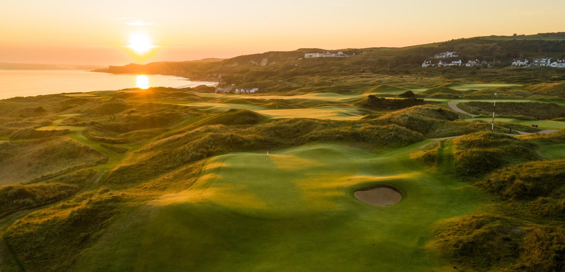 The Dunluce Course at Royal Portrush is one of the great links in world golf, set across towering dunes above the Atlantic on the Antrim coast. Long cherished by those who knew it well, it stepped fully onto the world stage after hosting The Open Championship in 2019 and again in 2025, allowing a wider audience to appreciate the quality and character of the course.