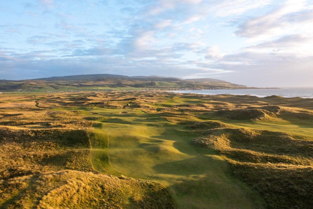 That opening hole is one of the most famous starts in golf. From a tee high above the sands of Machrihanish Bay, the question is simple and thrilling: how much of the beach is there to take on? It’s a dramatic beginning that immediately sets the tone.